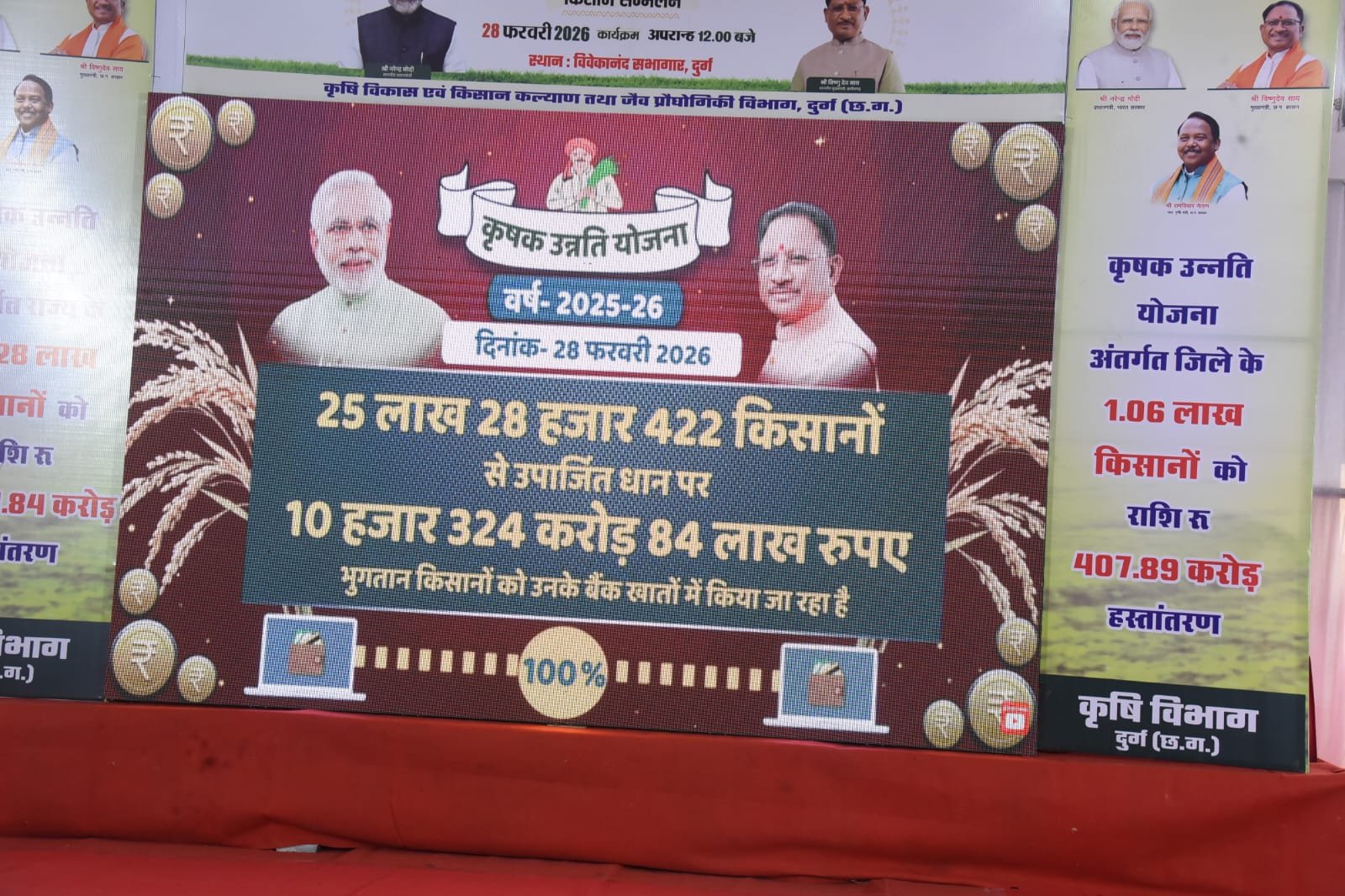 कृषक उन्नति योजना अंतर्गत वर्ष 2025-26 में दुर्ग जिले के 1,06,830 कृषकों को कुल 407.89 करोड़ रुपये की राशि प्रदान की गई।