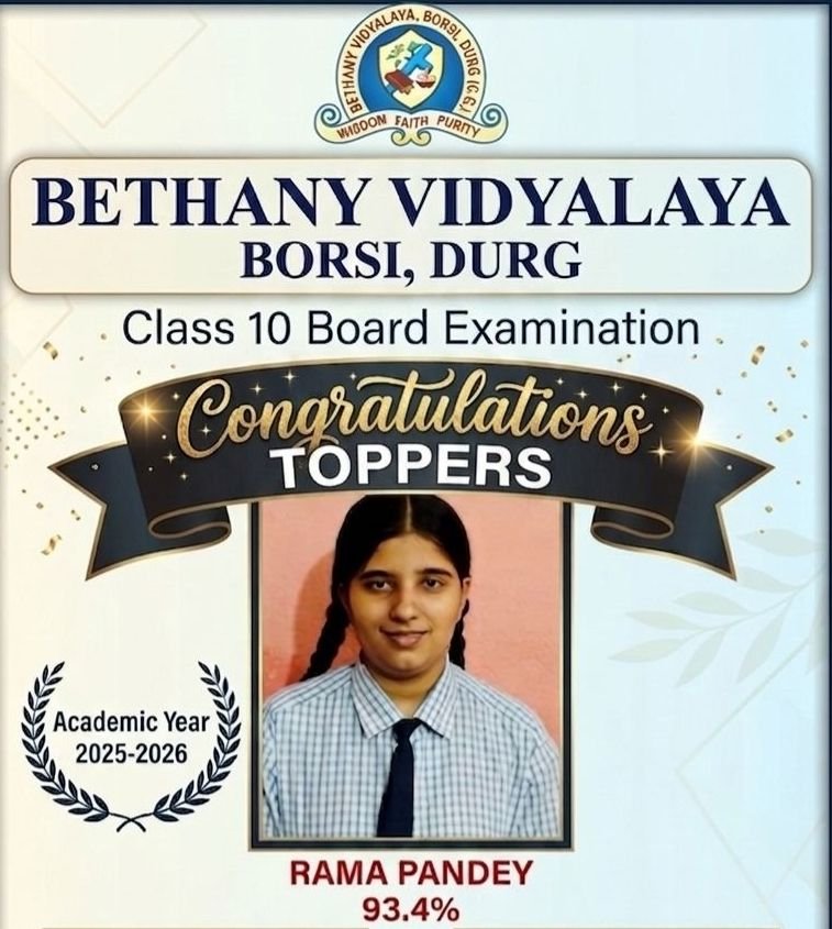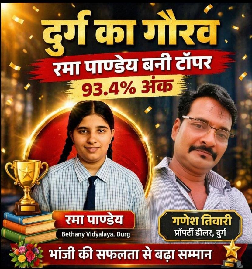 भांजी ने बढ़ाया मान: 93.4% के साथ दुर्ग की रमा पाण्डेय बनी टॉपर,बेथनी विद्यालय में प्रथम स्थान, पूरे शहर में खुशी की लहर…