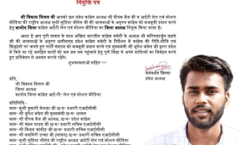 Read More »भास्कर न्यूज 24/वीरेन्द्र भारद्वाज/दल्लीराजहरा। कांग्रेस आईटी सेल कांकेर लोकसभा के अध्यक्ष नमन झाबक जैन के निर्देशानुसार एवं विकास जैन मित्तल…