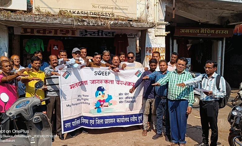 Read More »दुर्ग छत्तीसगढ़// नगर पालिक निगम छत्तीसगढ़ विधानसभा चुनाव को लेकर 17 नवंबर को मतदान होना है। शत-प्रतिशत मतदान के लिए…