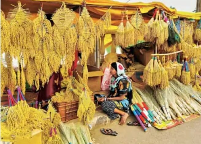 दीवाली पर बूढ़ातालाब के किनारे लगा धान की बाली का बाजारदुर्ग छत्तीसगढ़// दीवाली में सुख और समृद्धि के लिए धान…