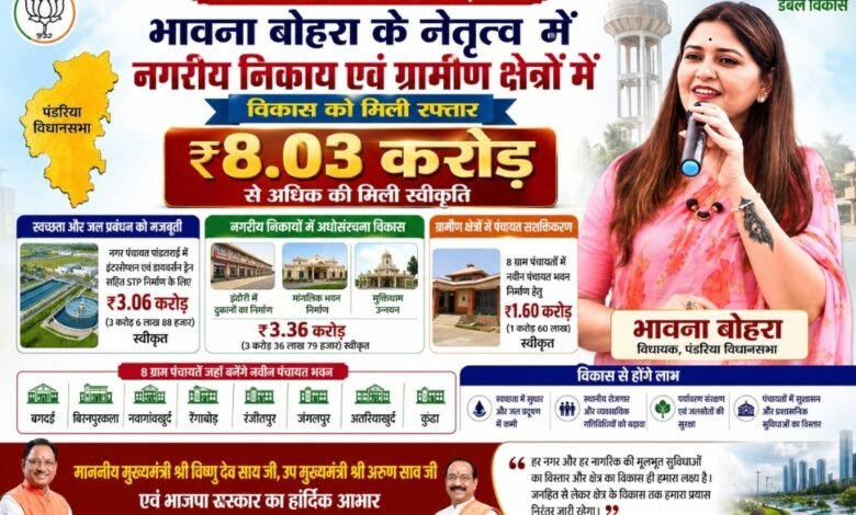 Read More »कबीरधाम// पंडरिया विधानसभा में विकास को नई गति देते हुए विधायक भावना बोहरा के नेतृत्व में नगरीय निकायों और ग्रामीण…