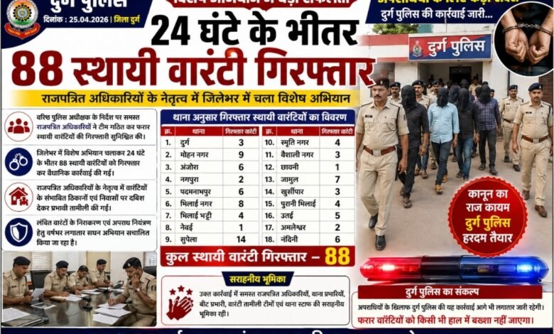राजपत्रित अधिकारियों के नेतृत्व में चला विशेष अभियान, जिलेभर में ताबड़तोड़ दबिश…दुर्ग// दुर्ग पुलिस ने अपराध नियंत्रण की दिशा में…