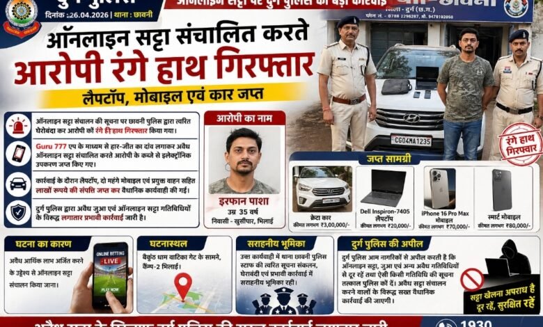 भिलाई// दुर्ग पुलिस ने ऑनलाइन सट्टा के खिलाफ चलाए जा रहे अभियान के तहत एक बड़ी सफलता हासिल करते हुए…